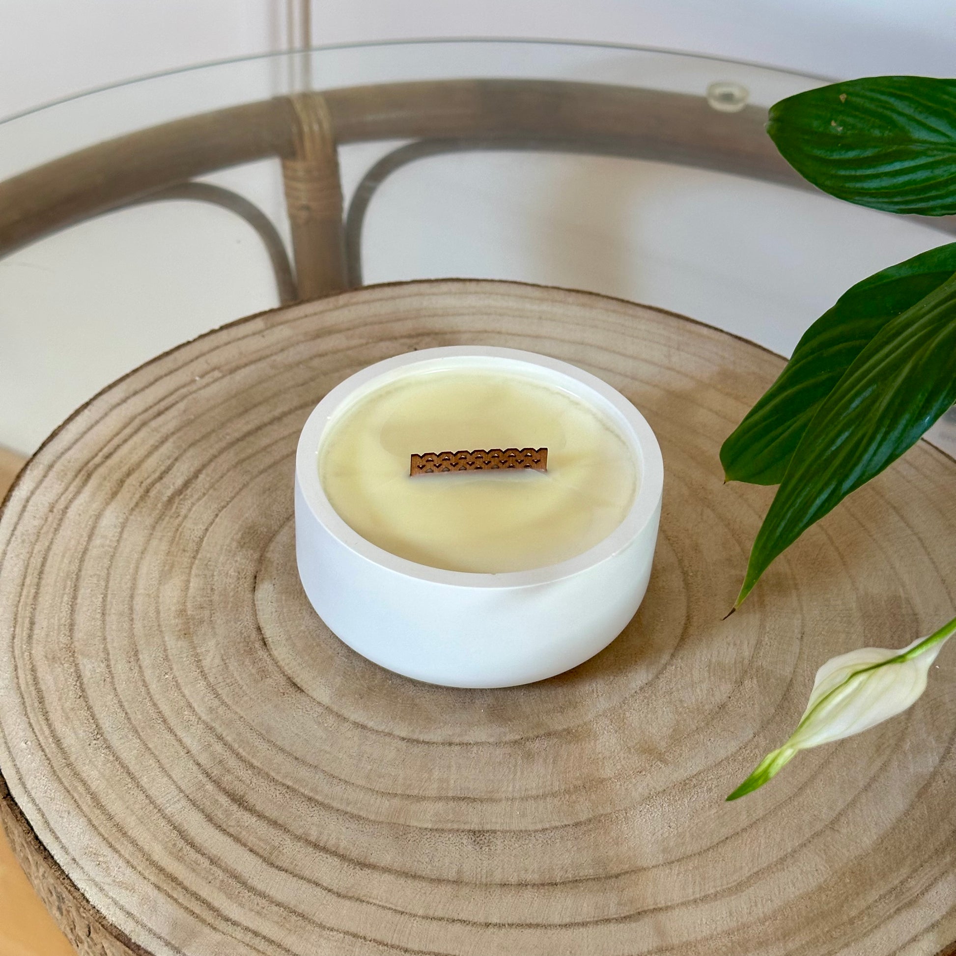 Elaborada con cera de soja 100% natural, libre de tóxicos y sostenible, esta vela es perfecta para decorar tu hogar, acompañar momentos de calma o regalar un detalle especial.