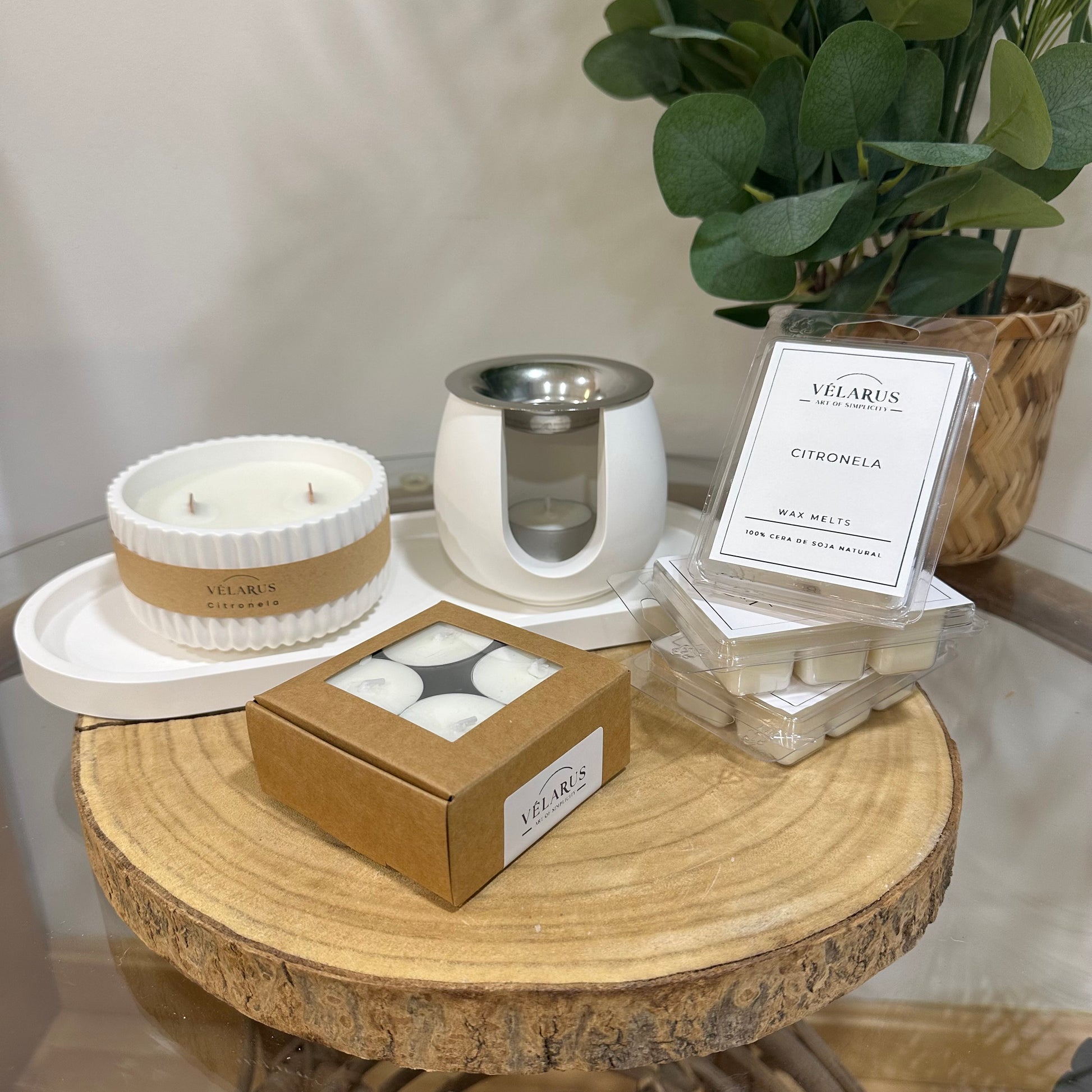 Puedes utilizar la vela de forma independiente o combinarla con el quemador y los wax melts para reforzar el aroma de citronela cuando lo necesites.