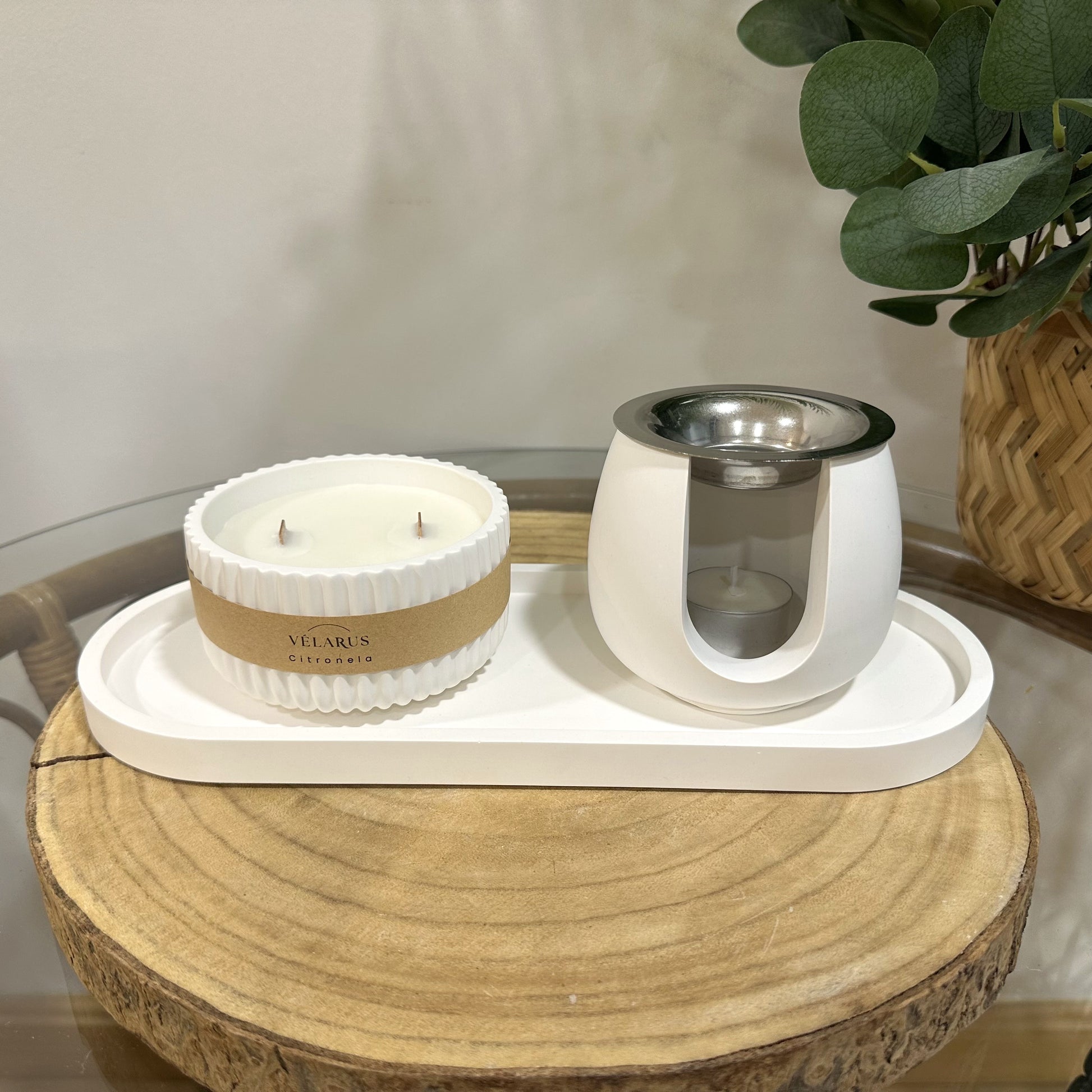 - Bandeja ovalada grande de 30,5 x 12,5 cm, ideal para reunir y presentar todos los elementos del pack.
