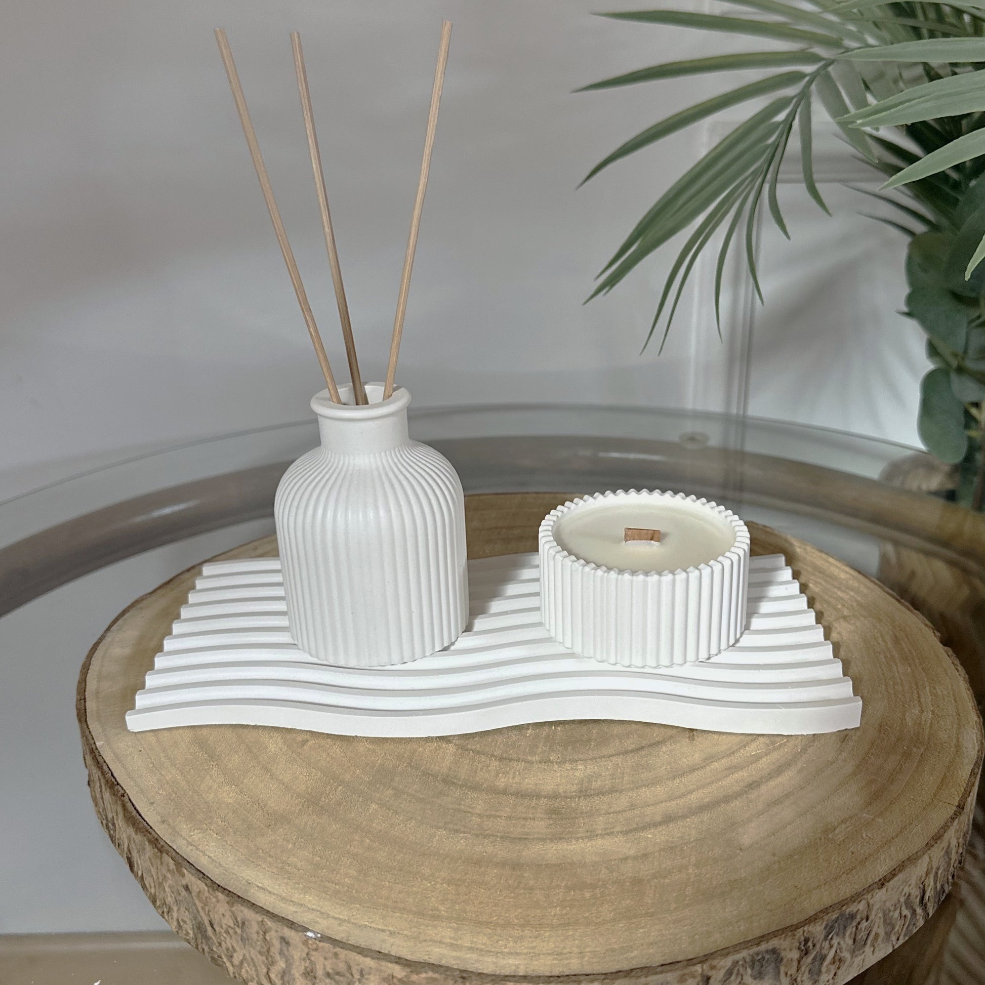 Un diseño elegante y atemporal en resina ecológica, con forma redonda y delicadas líneas verticales que aportan sofisticación a cualquier rincón de tu hogar. Este recipiente hecho a mano está pensado para rellenarlo con tu esencia favorita y usarlo como ambientador decorativo, perfumando con estilo salones, dormitorios o entradas.