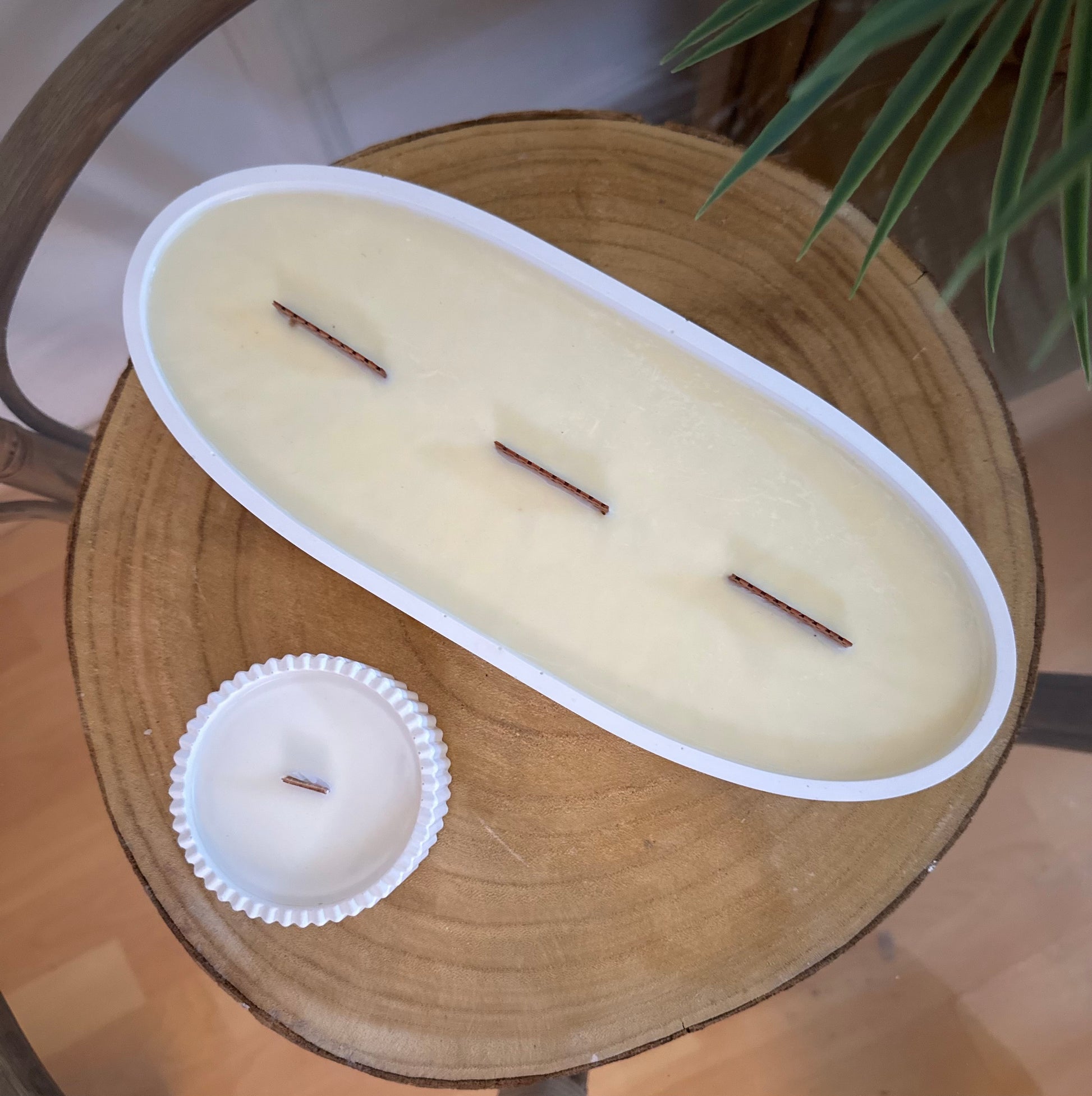 La Vela XXL ovalada con tres mechas de madera es simplemente espectacular. Su forma elegante y minimalista, hecha a mano con resina ecológica, la convierte en un centro de mesa o pieza decorativa de impacto. Las tres mechas crepitantes aseguran una combustión uniforme y llenan el ambiente de un sonido cálido y acogedor, creando momentos de calma y armonía.