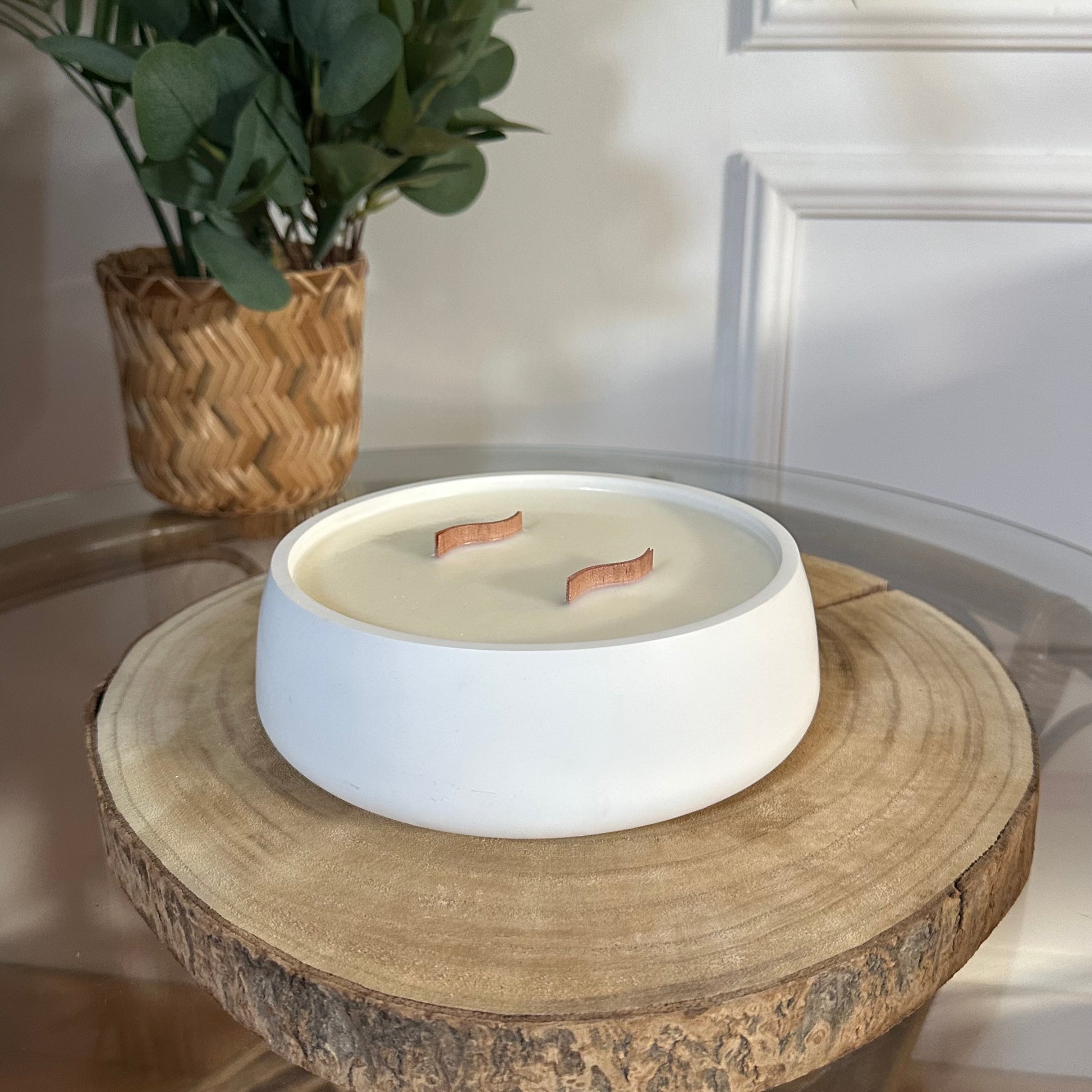 Nuestra Vela XXL redonda sin aroma está creada para envolver cualquier espacio con una luz cálida y un sonido relajante, proporcionando momentos de calma y armonía. Su recipiente artesanal, elaborado en resina ecológica, combina diseño y sostenibilidad, mientras que sus dos mechas onduladas de madera ofrecen una llama uniforme y un crepitar intenso, evocando el sonido del fuego al arder lentamente.